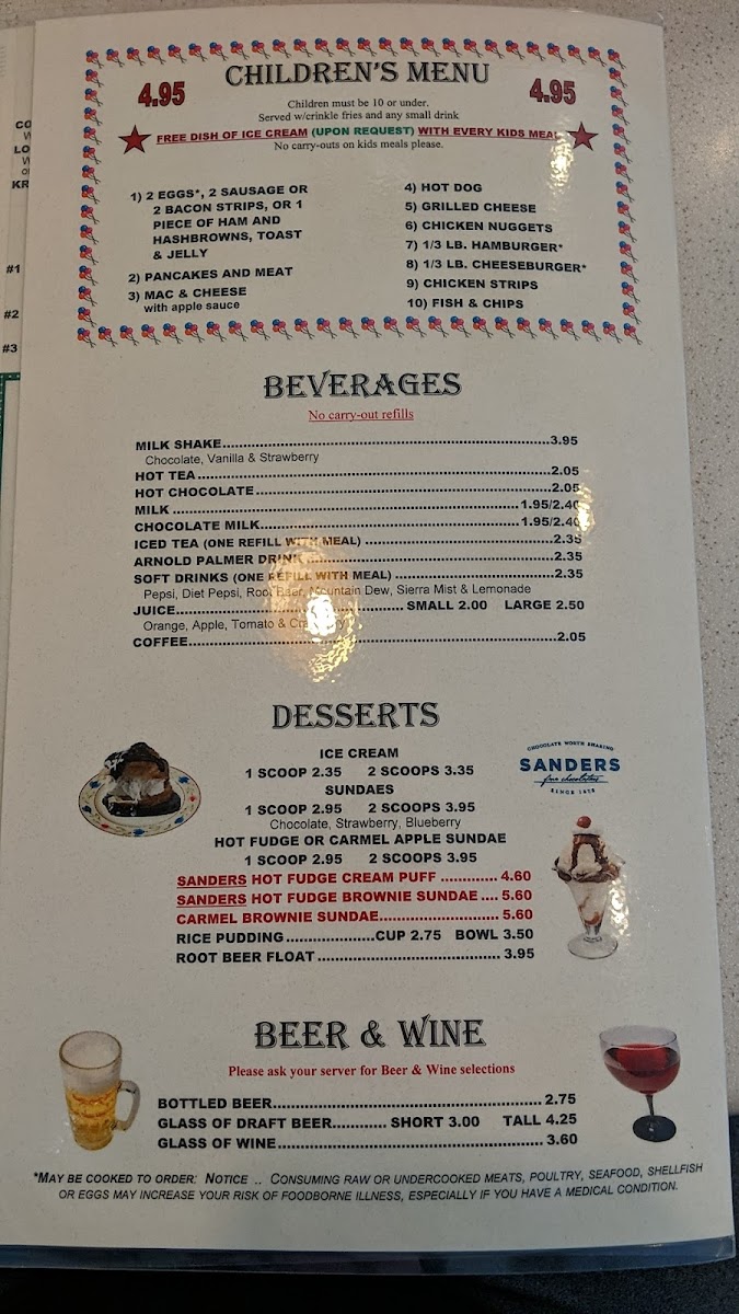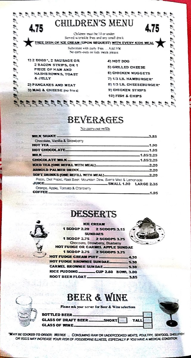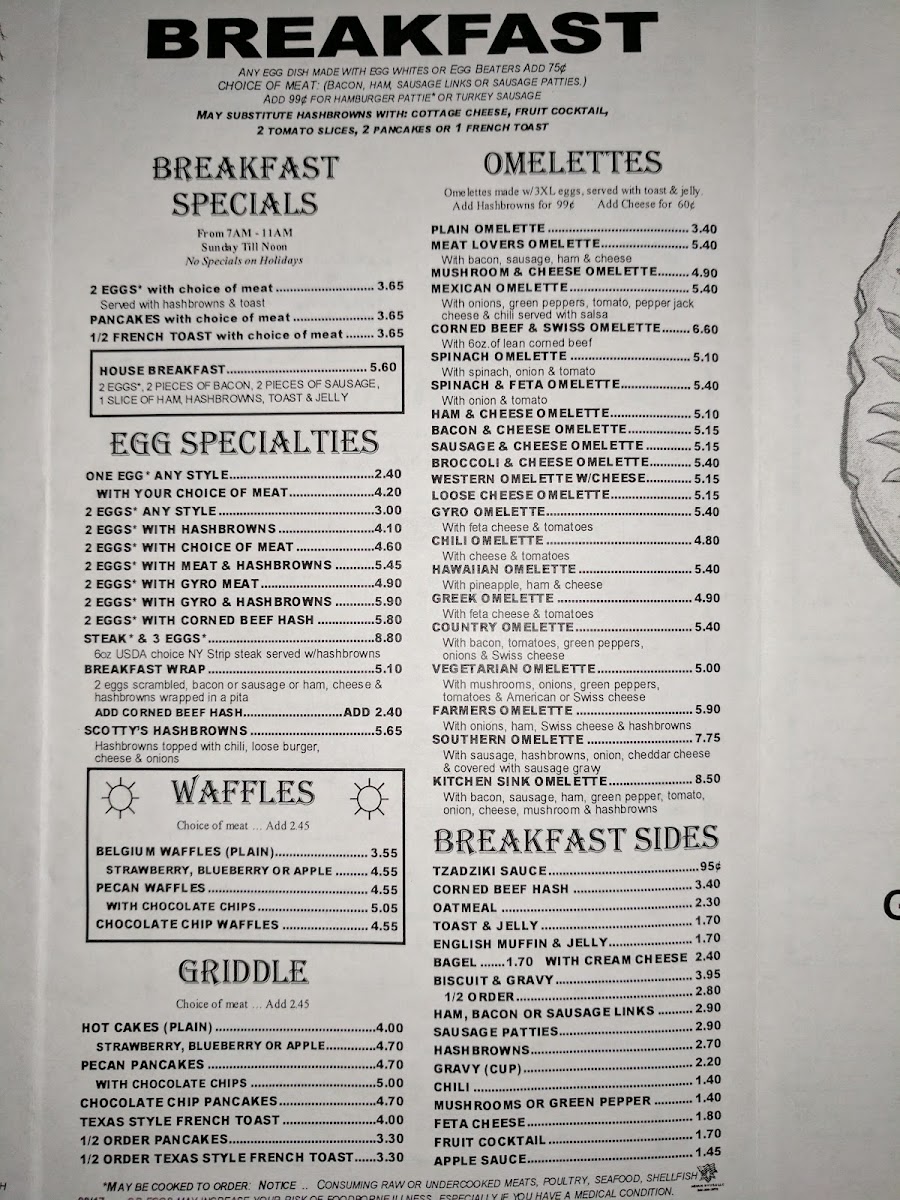 Breakfast options range from traditional plates like biscuits and gravy or corned beef hash to more unique choices such as eggs served with gyro meat and hash browns. Midday and evening guests will find satisfying sandwiches like chicken strip pitas, grilled cheese, and a variety of burgers alongside fresh salads including the Michigan Salad and Greek Salad with chicken. The menu also features family-friendly comfort foods like chili cheddar cheese fries and shrimp in a basket with fries, perfect for casual dining without fuss.
