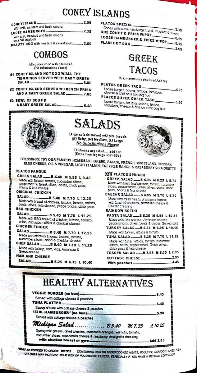 Plato's Place & Coney Island offers a welcoming menu that blends casual, comforting dishes with a touch of Greek flair. Whether you're stopping by for a hearty breakfast, a filling lunch, or a relaxed family dinner, the menu serves up simple favorites and modestly elevated classics that fit effortlessly into a warm, inviting atmosphere.
